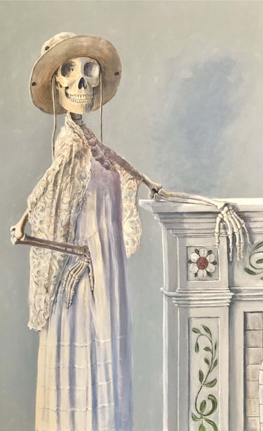 Meet Blanche, a game girl for the New Gilded Age. She's a happy nihilist and with one foot gingerly in the other reality, she does have a genuine claim to nihilism's deeper philosophical origins; she's got the goods, all the receipts as they say these days. Blanche is also an accomplished model, once she gets her pose she doesn't move an inch (for days). As you might notice from her portrait she has roots in the previous Gilded Age. Nothing like unbridled accumulation and wealth disparity to make for interesting times and delicate dresses.