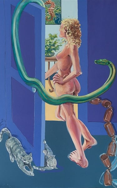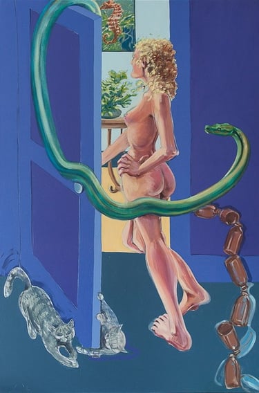 Most of these paintings were done in the mid to late 1980s and they are still hanging around and there are more than are shown here. The ultimate artistic challenge is storage.