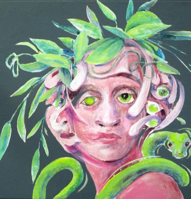 Blanche tries many hats in an effort to understand the consensus reality. The portraits are a record of her many contemplations.